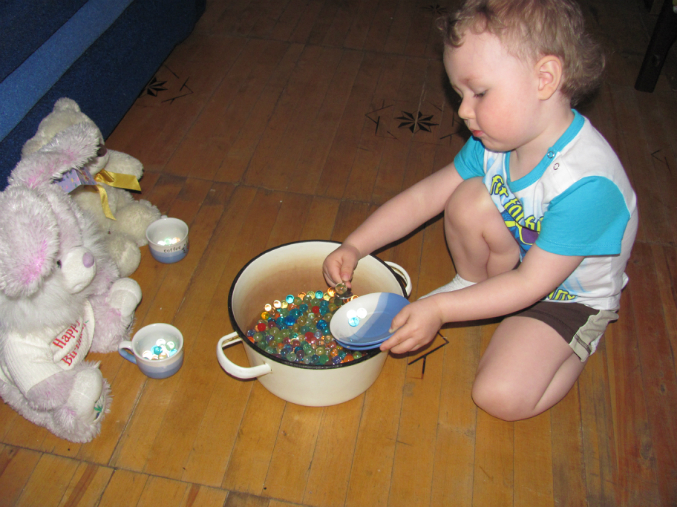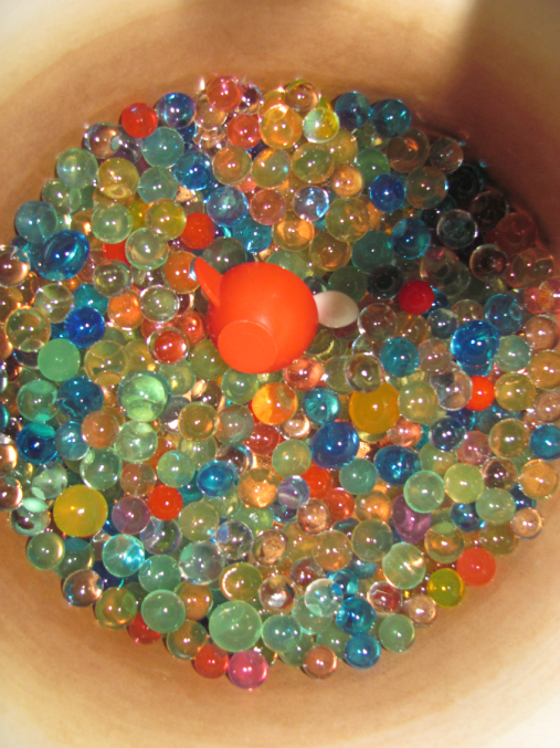Гидрогель купили в цветочном магазине, он не пахнет. В лотке 3 пакетика и полчаса терпения, для того чтобы шарики успели набухнуть и вот уже 4 дня самых разных игр.