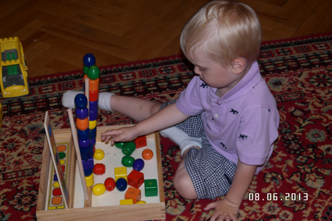 Хорошие занятия, интересно у вас! Санек - молодец!!! Тань, а в пирамидке веревки идут в наборе? Для бус? Моя чуток отличается - карточки деревяшки-образцы с одной стороны, а палки с другой стороны коробки. А так, думаю, такая же. А сколько комп стоит?