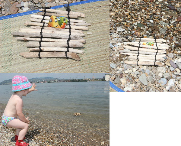 Насобирали мы палочек, сделаил плот и отправили наших путешественников в плавание))) Ксенечка кричала им: Чао, и так радовалась)))