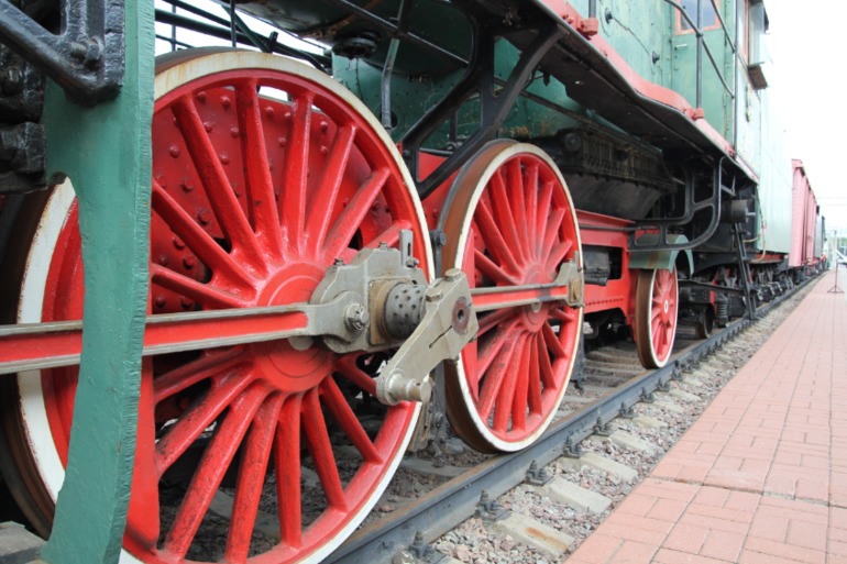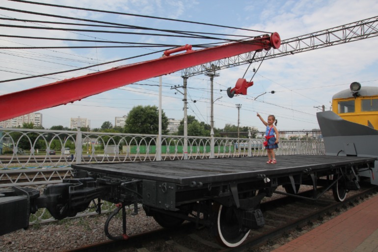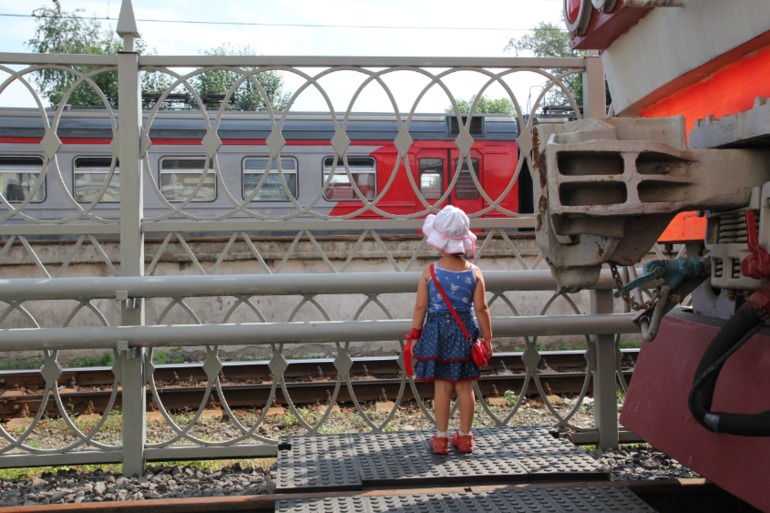 Повстречались нам поезда с огромными диаметрами колес... Больше чем рост Насти (больше 100см).