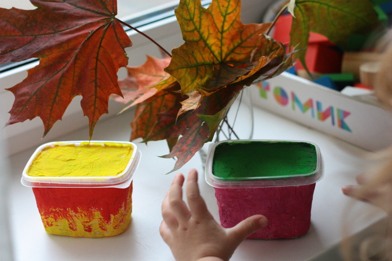 Пальчиками очень интересный рисунок получился. Покажите потом, что из листьев делали.