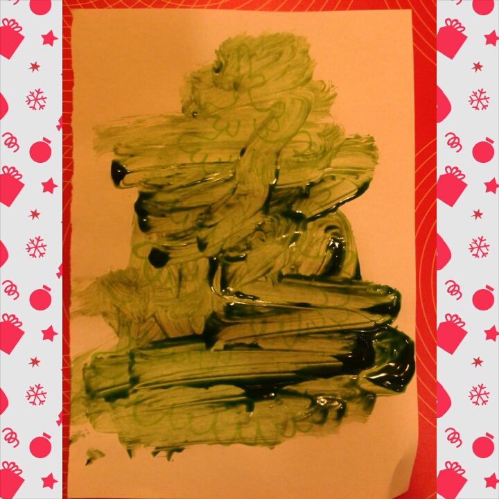 а мы рисовали еловыми палочками, иголочками ))) Форму елки я корректировала )но вообще рисовать иголочками весело - очень оригинальные рисуночки.