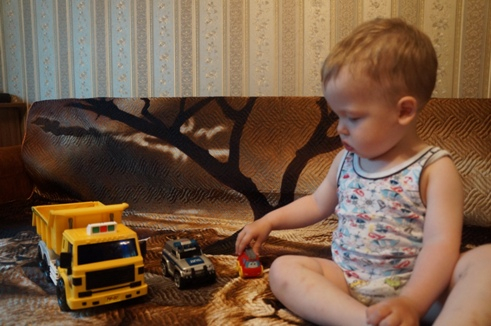 Нашли в нашем автопарке самую большую, самую маленькую и среднюю машинку и еще раз повторили это занятие.
