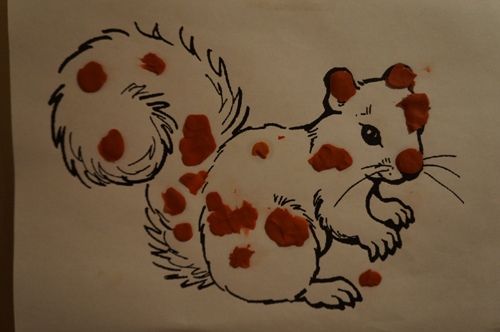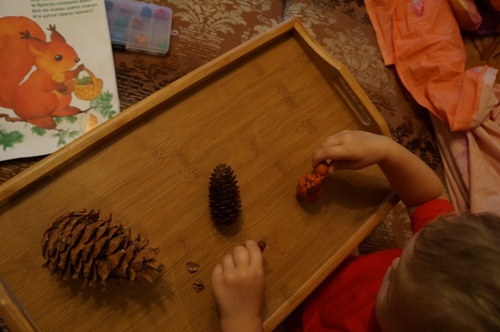 С сентября мы начали ходить на интонику. На последнем из которых преподаватель рассказывала про белочку, потом мы шишки ложками в корзинку собирали, а под конец было у нас творческий рисунок: