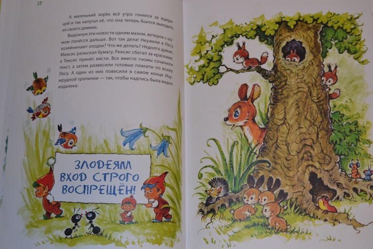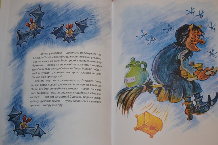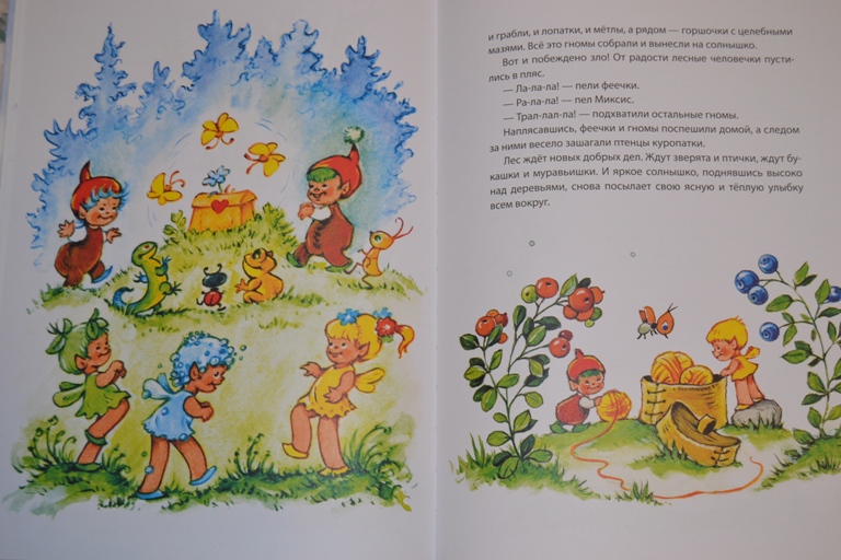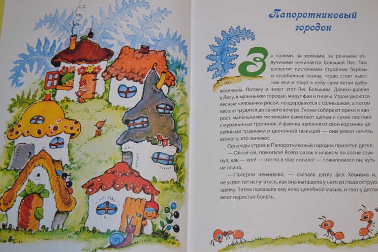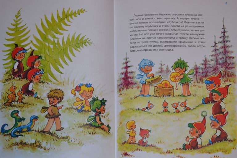 Купила я ее сразу, без отзывов, посмотрев всего несколько страничек. Я знала, что сказка про лесных человечков, фей и злую колдунью точно понравится Настене.