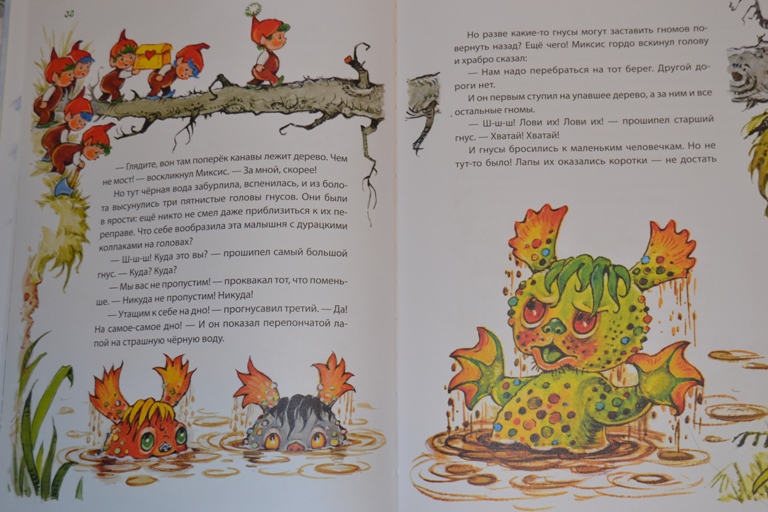 На пути им повстречались злые гнусы, которые жили в болоте и чуть было не утащили туда гномика Миксика