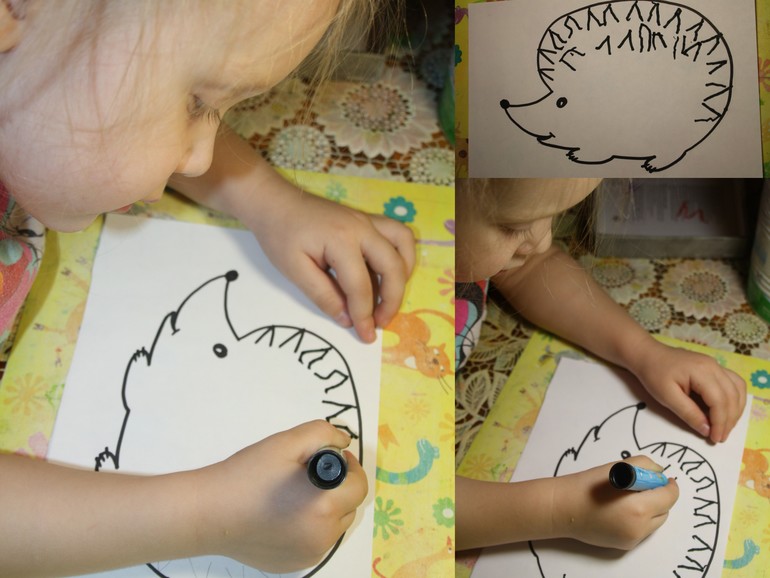 8. Нарисовали ежику иголки (сначала обвела, а потом нарисовала сама).