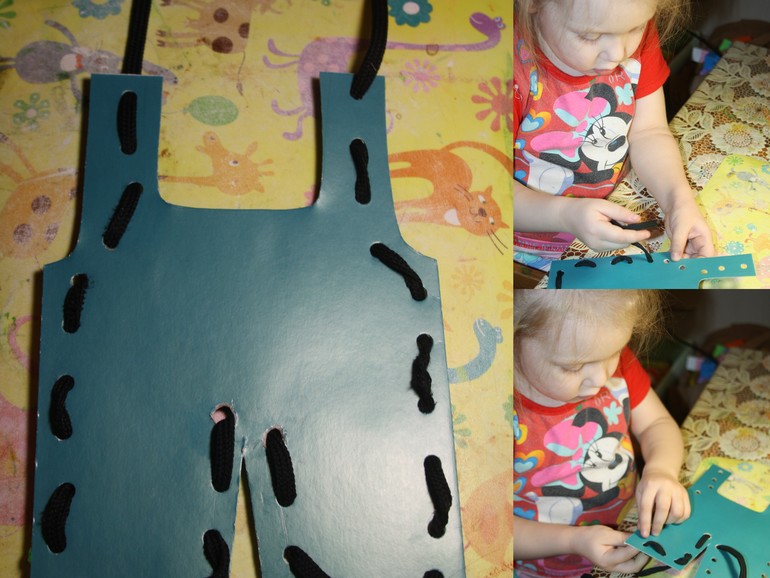 12. "Сшили" штанишки вместе с птичкой - шнуровка.