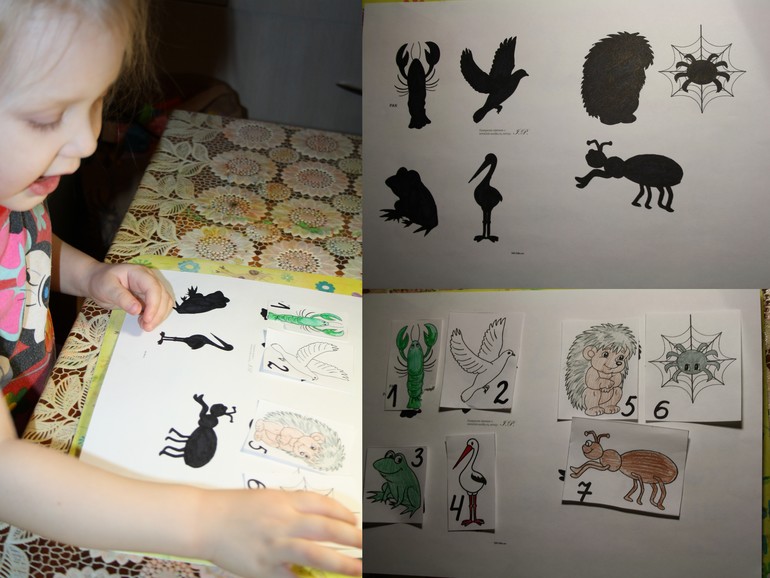3. Назвали всех, кого встретил Кротик, отгадав их по тени и наложили изображение на тень.