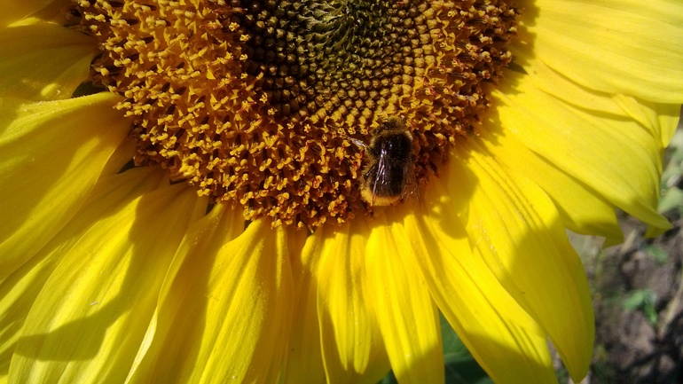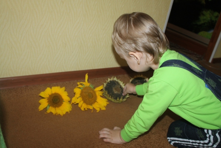 Для начала мы просто их рассмотрели. Узнали, какой подсолнух более молодой, а какой уже созревший.