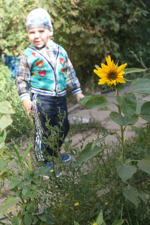 И О ЧУДО!!! Около дома рос совсем ещё маленький подсолнушек)))
