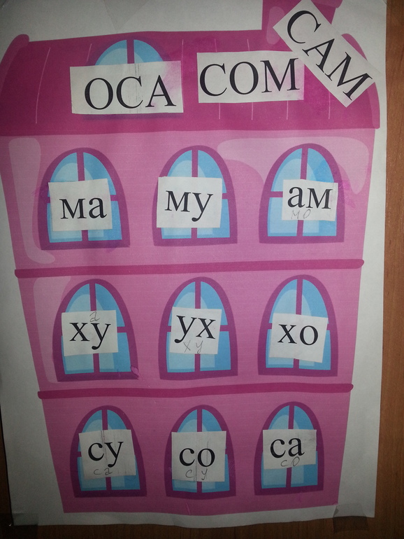 Я поняла, что Даше это очень интересно и нашла очень красивые домики в которых жили буквы. Так как буквы Дашуля уже знала, то в домике у нас жили слоги. Вот такие