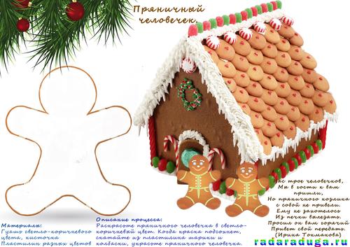 Пряничный человечек и пряничный домик (мы создавали и украшали человечка, когда пекли такое печенье):