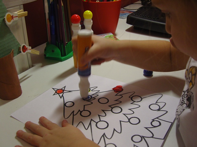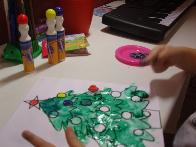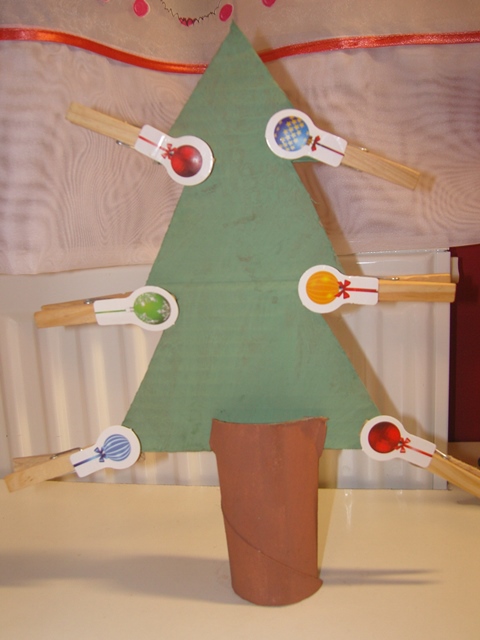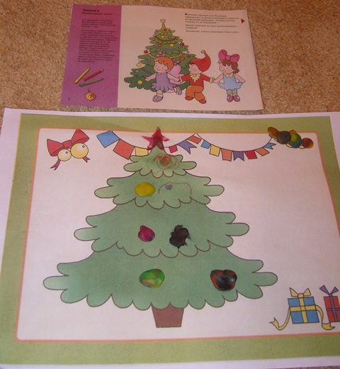 Сделали елку (я подготовила картонные заготовки), дочка с папой разукрасили и Эльвирка прикрепила шарики. Вышло очень красиво!