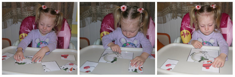 А потом как подул сильный ветер, и наш снеговик развалился на части. Собирали пазл.