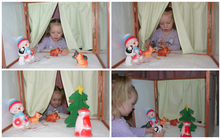 А кто отнесет конверт Деду Морозу, конечно Снеговик. С помощью планшета собрали снеговика (играли с ним впервые, поэтому сложно еще давалось передвижение фишек)
