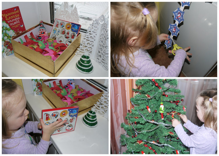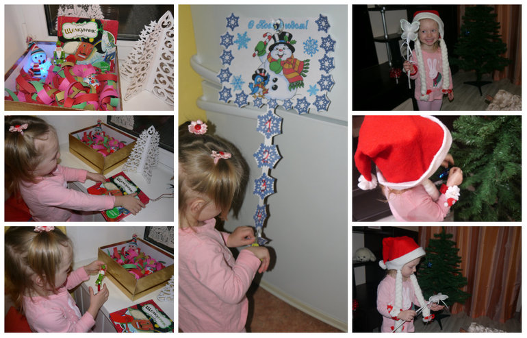 В этот день мы собрали елку и немного ее нарядили. Лиза нашла колпак снегурочки, и весь вечер его не снимала, ходила и говорила "Я Снегурочка" .