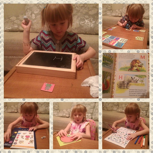 Теперь о составляющих занятий. как я уже говорила, то мне на данный момент хочется уделить внимание буквам - слогам. Может конечно стоит ждать интереса опять от Лизы, но он у нас не стабилен, поэтому решила так..