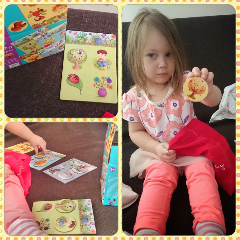 Из мешочка нужно было доставать не глядя фишки, называть время года и класть на поле.