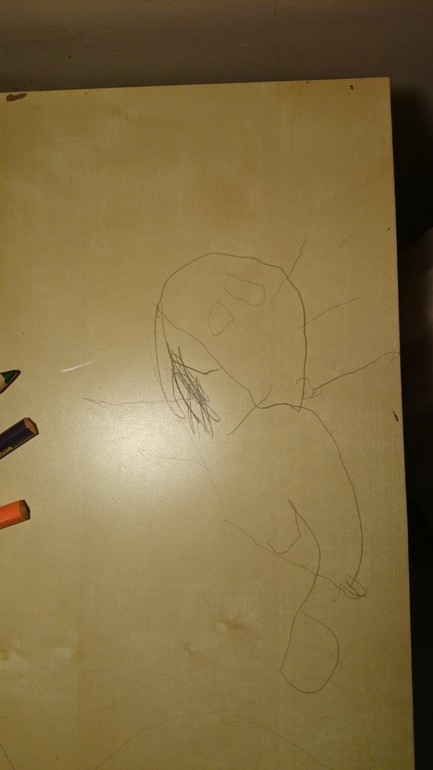 Правда нарисовала Лия прямо на столе, жалко стирать...Попросила ее нарисовать еще раз на листочке.