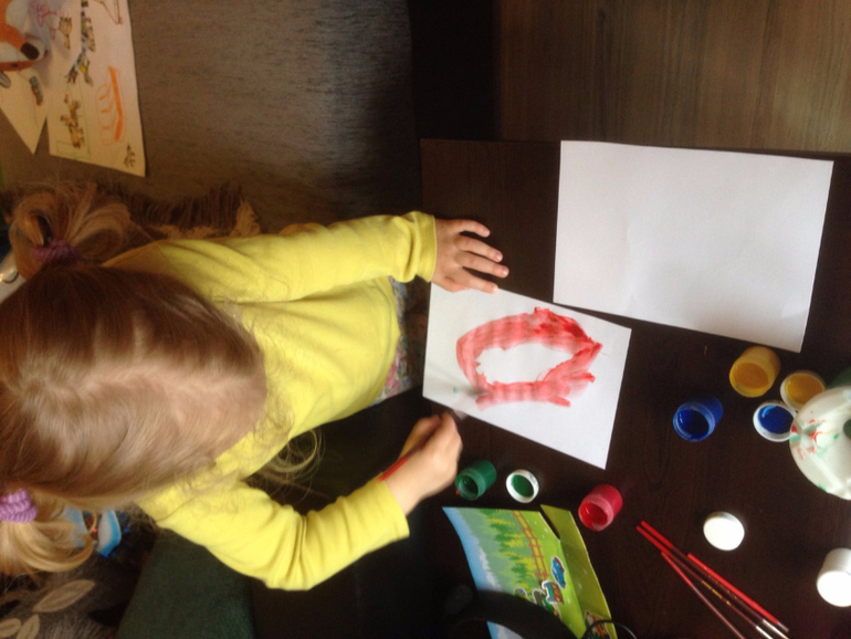 Рисовали букву О, сначала по моему шаблону, а потом просто от руки
