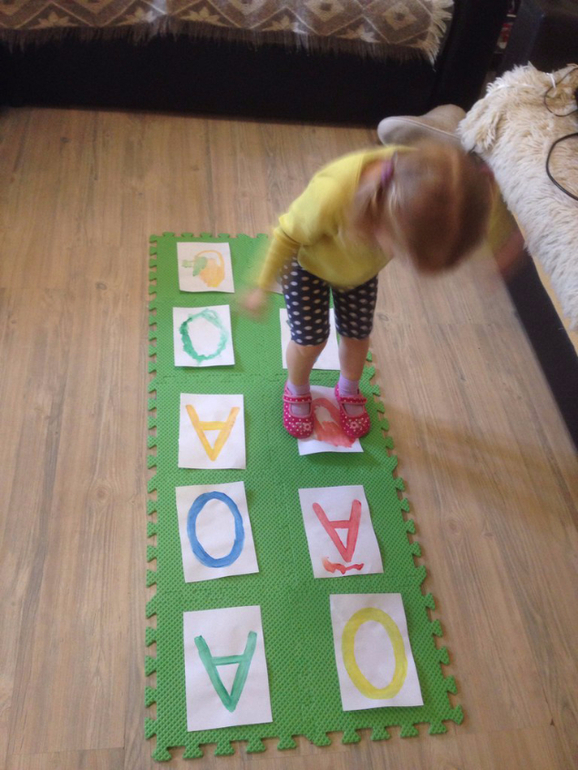 По нарисованным буквам играли в классики: прыгали на букву О, а потом Остапа понесло - по всем подряд, через одну и приговаривая буквы)