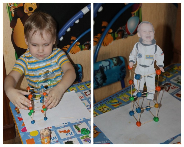 Сделали сферу для нашего космонавта))) с помощью зубочисток и пластилина.