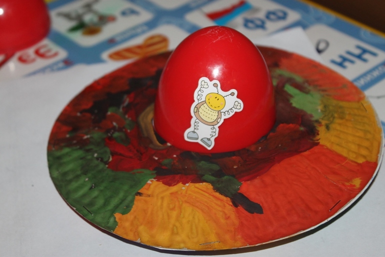 Они растеряли свои "тарелки". Необходимо их рассадить по тарелкам - надеть на горизонтальную шпажку в соответствии с цветом.