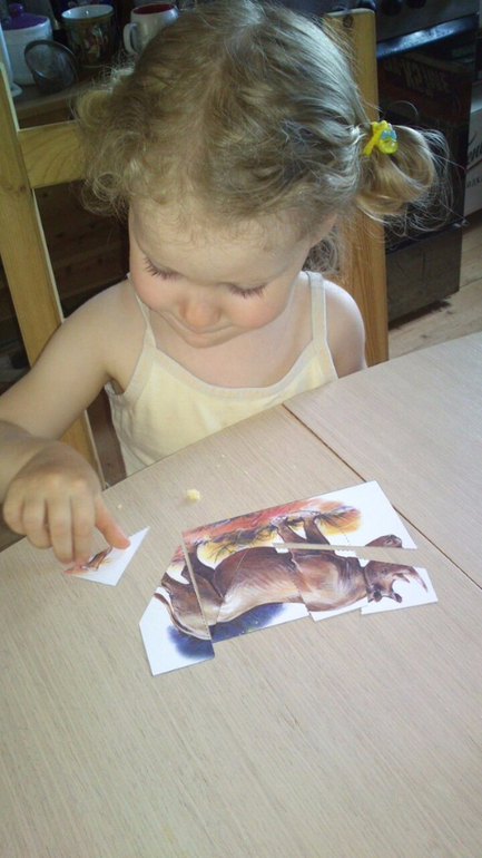 Собирали пазлы, элементов довольно сложные для дочки, но со второго раза Аришка удачно справлялась и без моей помощи