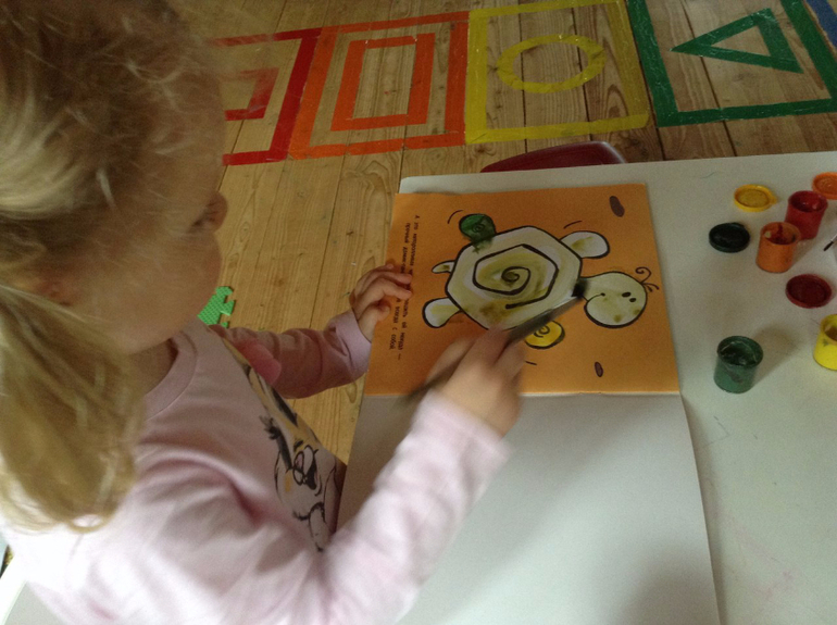 После прочтения книжки стали раскрашивать, но Арина последнее время рисует меньше, чем раньше, поэтому раскрасили пару картинок.