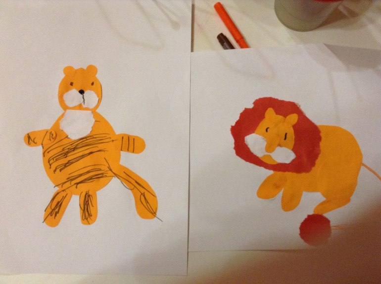 Сделали аппликации. Да, тигр не живет в Африке, но раз Аришик вспомнила тигра, и его сделали