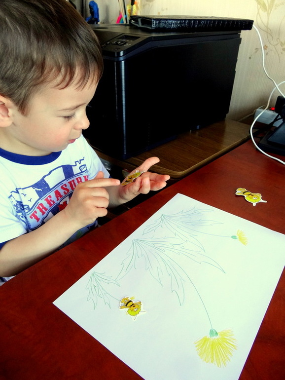 Потом разложили по размеру пчелок: каждая прилетела на свой цветок.