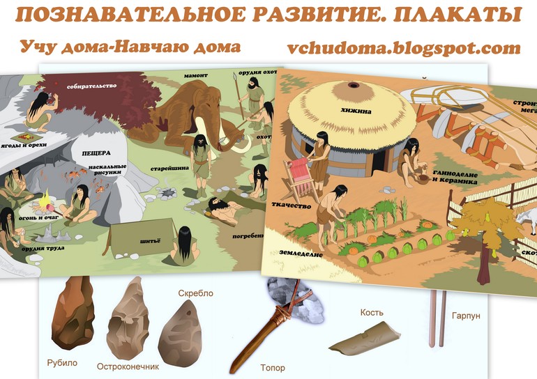 1. Плакаты "Палеолит", "Неолит", "Орудия труда и охоты"