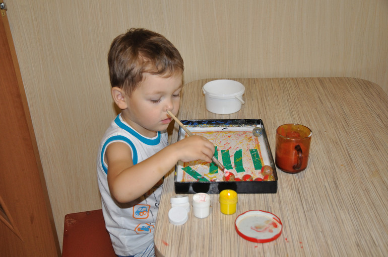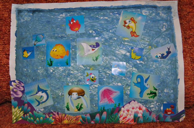 Оля http://www.babyblog.ru/user/lenta/Neposed_net поделилась идеей рисования стеклянными шариками, за что ей большое спасибо. Егор сразу понял как рисовать шариками, и фантазия моего сына разбушевалась)))Вот у Егора волшебное море