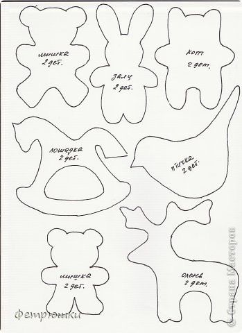 Буду шить из фетра, но можно из любого другого материала (старые трикотажные футболки тоже подойдут). Наполнитель на выбор : вата, силикон,целлофан.
