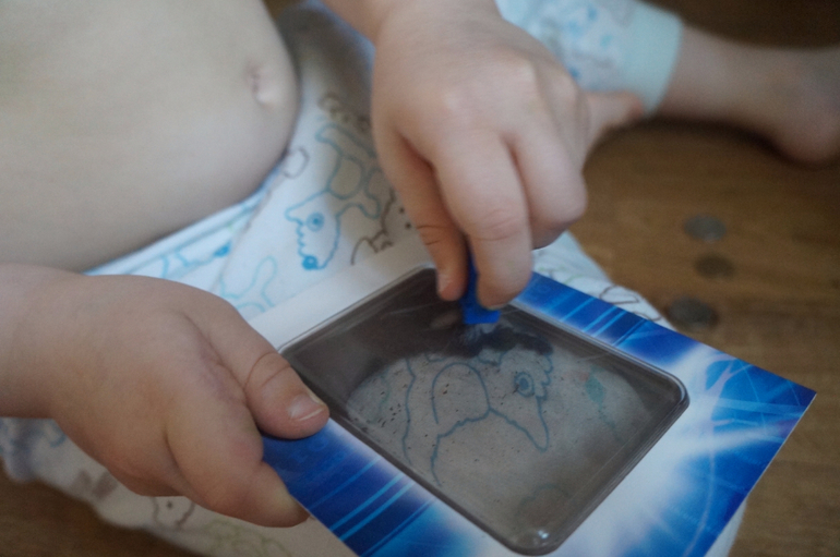 еще подарила магнитный набор, там была магнитная стружка, сначала она его не заинтересовала, но потом в течении дня подходил к ней частенько.