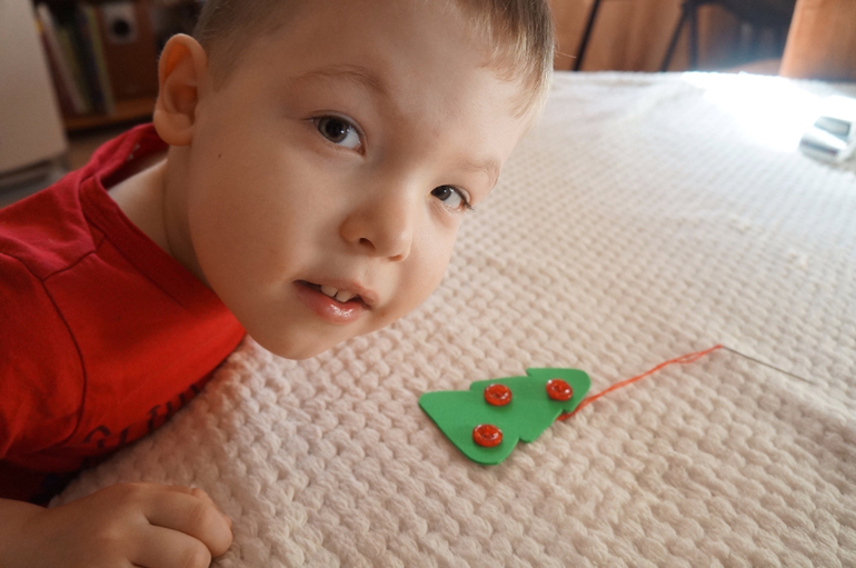 Пришивали украшение для елочки:
