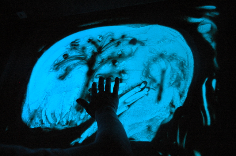 На световом столе мы рисовали лес, деревья, ну и как обычно бабу Ягу в лесу, куда ж без нее....)))