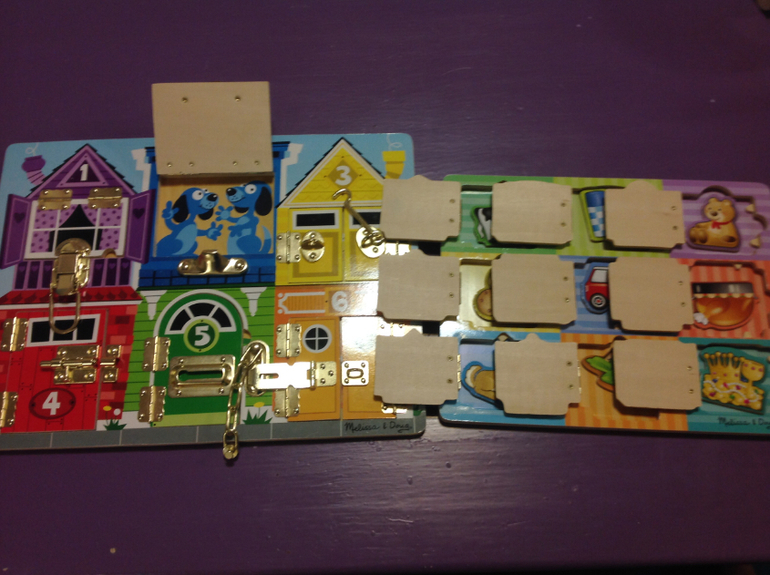 дощечка с магнитами той же фирмы, что и доска с замочками - Мелиса и дог, только в ней за каждой дверцей прячется магнитик.