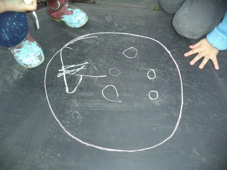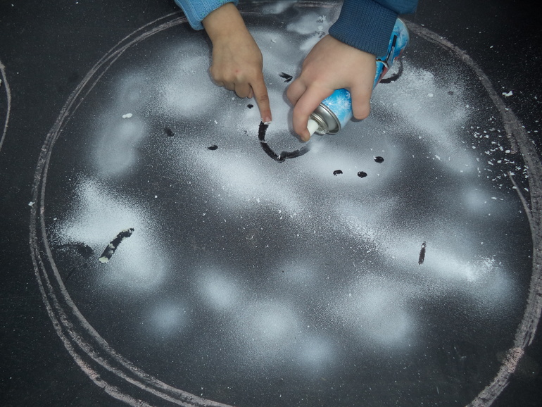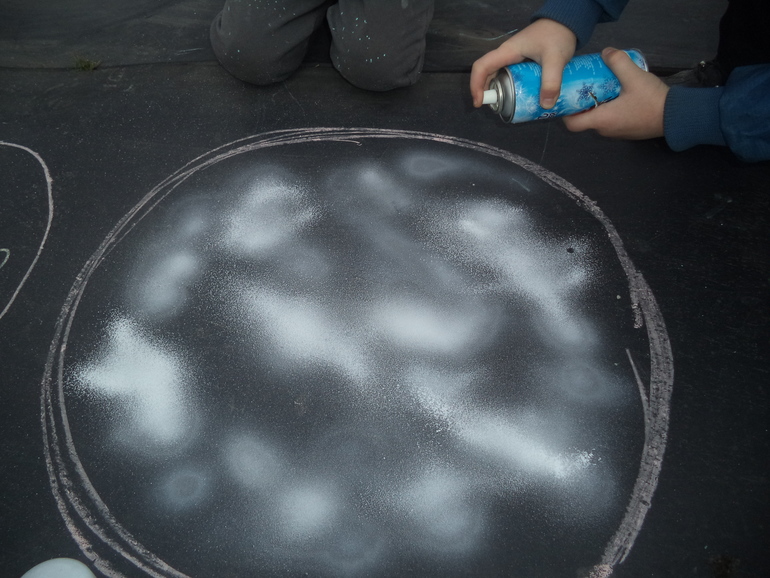 Двигаемся дальше- Марс. Разглядели горы, а самая высокая гора Олимп. Марс раскрасили красным мелком (сосед прибыл на помощь девчонкам):