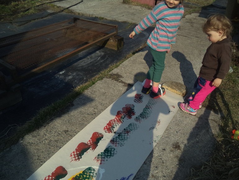 Еще делали отпечатки ручек на гипсе, потом их раскрасили.