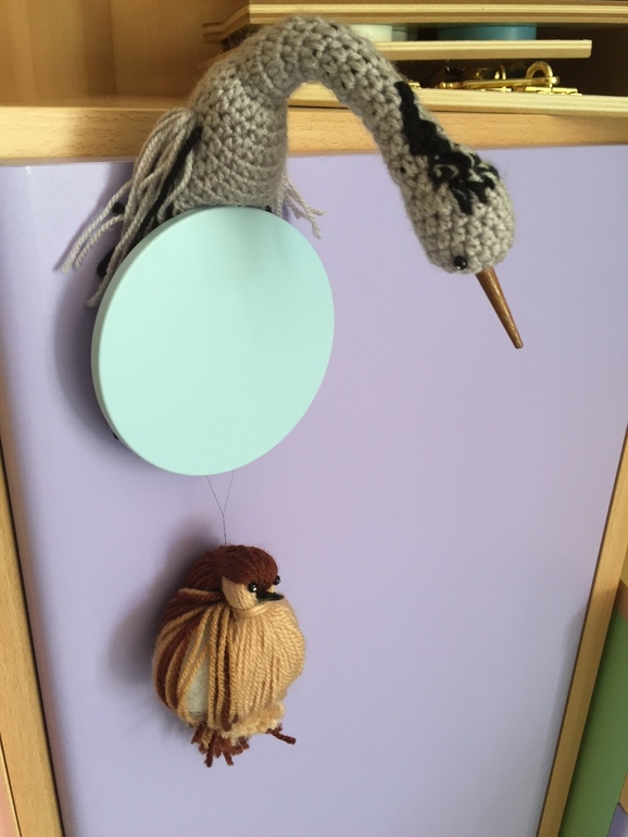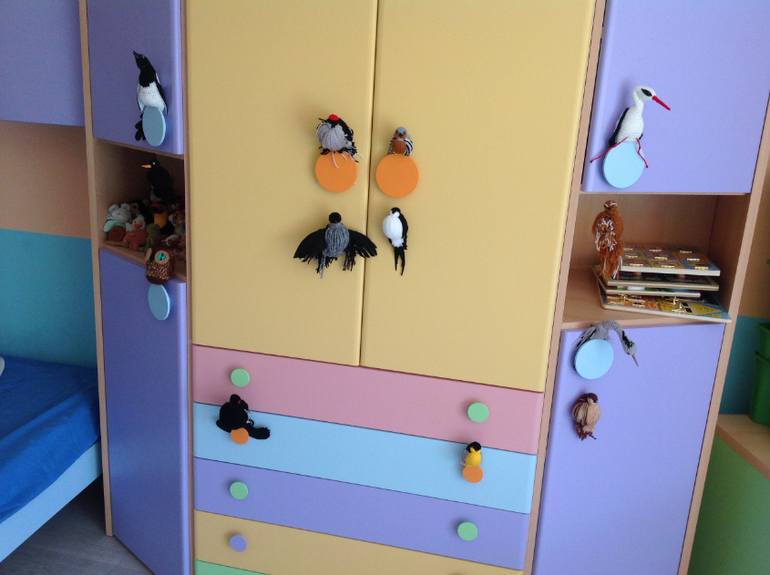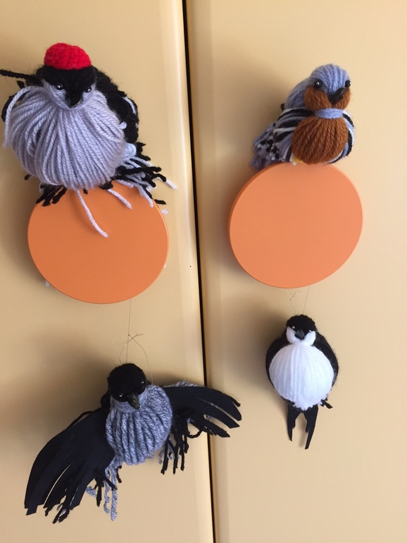 Обещала показать наших рукотворных птиц, а заодно объявить розыгрыш) дело в том, что это самые распространённые персонажи сказок и потешек, а купить их трудно. Пока развешивали по шкафчику, успели выучить практически всех) Мастер - класс по ним элементарный, выкладывал здесь кто-то из девочек, если надо найду ссылку.Итак, объявляю небольшой конкурс! Кто первым правильно опознает всех птиц - от меня приз. Ну очень достойная книжечка) дело в том, что среди старших детей возникли прения, по поводу принадлежности той или иной птицы к своему семейству. Поэтому очень интересно, насколько идентичными они получились) набралось 14 птиц.