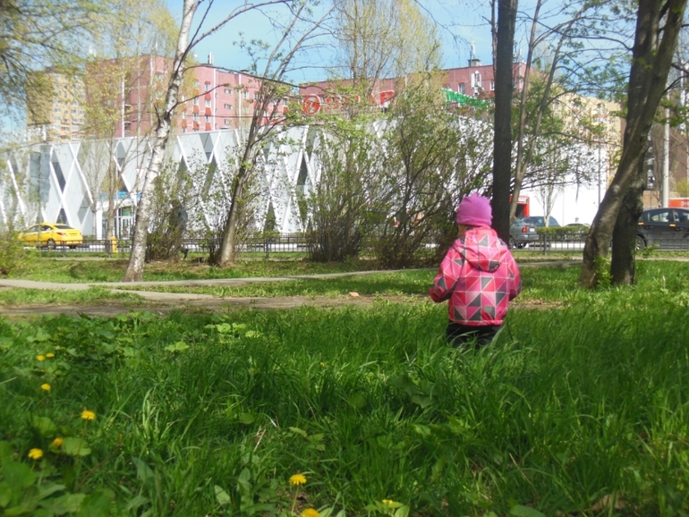 В каменных джунглях всегда стараюсь показать дочке "немного за тротуаром." Часто нарушаем правила и ходим по травке. Разумеется где нет клумб)
