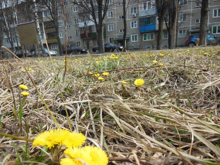 В начале апреля еще лежал снег, а теперь уже вовсю цветут одуванчики и пригревает солнышко.