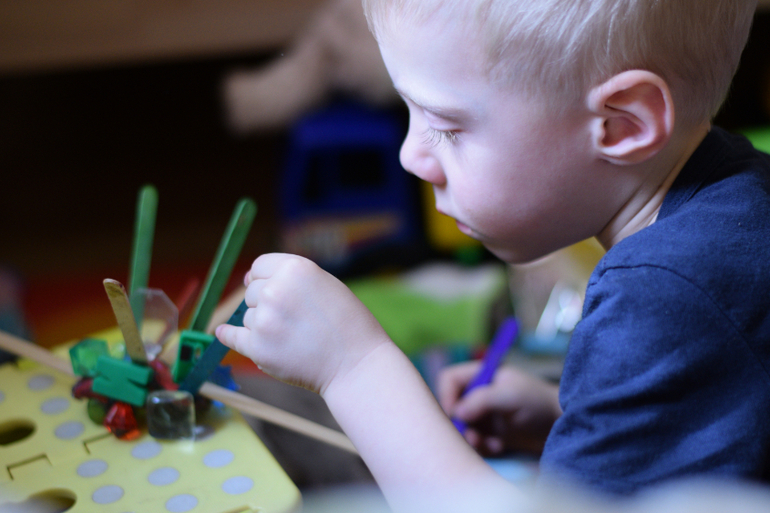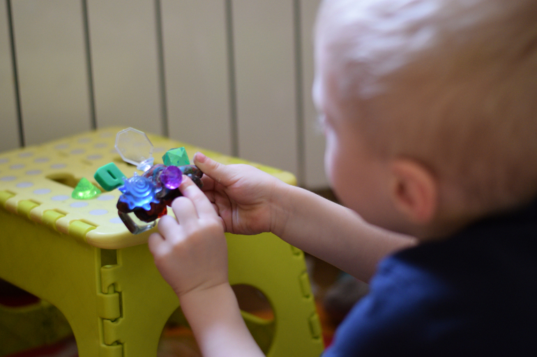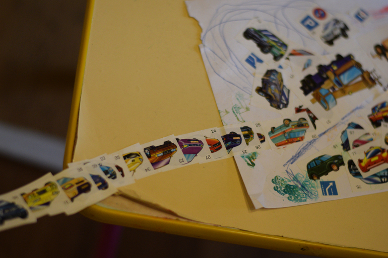 Андрей конструирует модель нового автомобиля.Очень любит наклеивать наклейки разными способами.