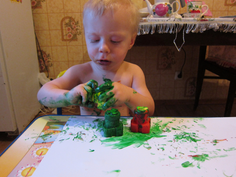 О, наклейки удивили, тк у меня девочки и у них совершенно другое мышление... Моим старшим детям 3,5 и 2,5.... Старшая очень аккуратная и рисует аккуратна и сама моет пальчики , тк все остальное чистенькое. А средняя дочка обожает рисовать на себе и на всем, что попадется под руки. Организация рисования для двоих- это пытка, тк средняя дочь творит исключительно стоя и со своего поля деятельности обязательно переходит на творчество сестры. Старшую дочь это конечно очень обижает... Так что красками мы рисуем по отдельности ....Все ваши эмоции мне хорошо знакомы, но Вашего результата мы еще не достигли. Вы умница!