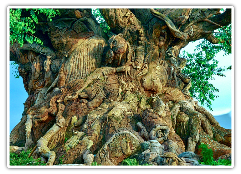 "Главной центральной частью парка Королевства Животных и его символом является "Дерево жизни" высотой 44 м, шириной 15 м. Дерево Жизни, призванное олицетворять взаимосвязь всего живого на планете - результат труда более 12-ти мастеров, создавших 325 резных фигур животных. Дерево целиком искусственное. Поддерживающая дерево стальная структура была разработана по тому же принципу, который применяется при строительстве нефтяных буровых установок в море. "Самой трудной частью работы в создании фигур было нахождение баланса между формой животного и формой дерева" - говорит Жолт Хормэй, главный скульптор и дизайнер из Будапешта, чья команда включала трех индейских мастеров, мастеров из Франции, Ирландии, Индианаполиса и Центральной Флориды. Чтобы добиться эффекта плавного перетекания одной фигуры в другую, внешняя часть ствола, из которой делались фигуры, обрабатывалась за пределами парка. Далее весь ствол был разделен на 10 огромных сегментов и переправлен на строительную площадку перед парком."