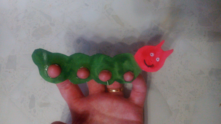 8.Ползающая гусеница. Эффектнее было бы, если нитку привязать, чтобы не так заметно было. Но Димка вырвал конструкцию, ему и так весело было "возить" гусеницу за веревочку))