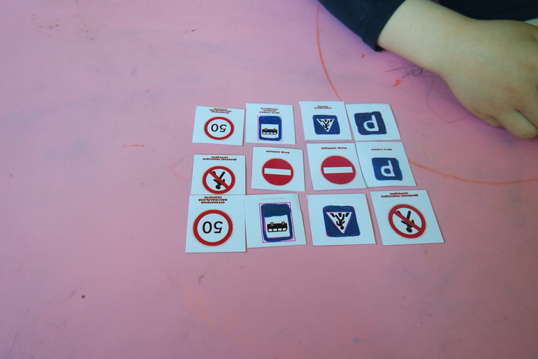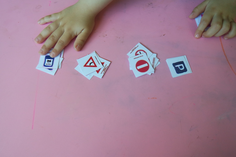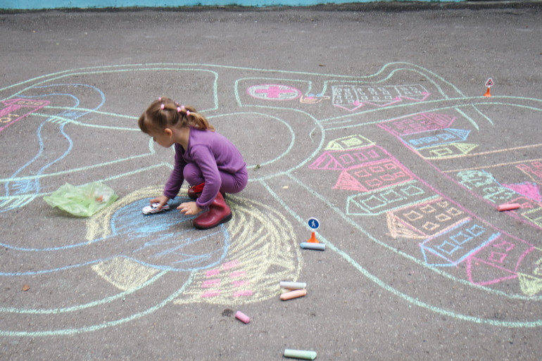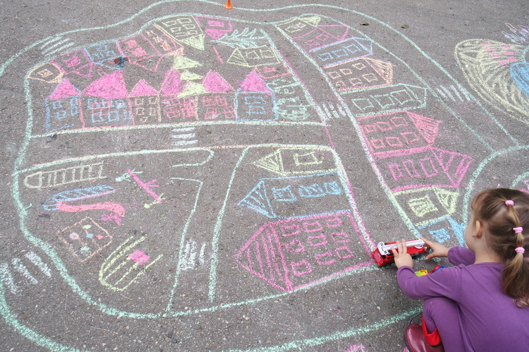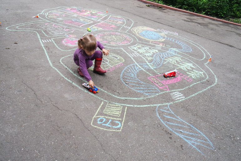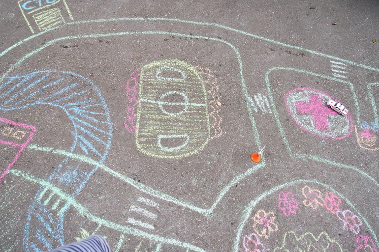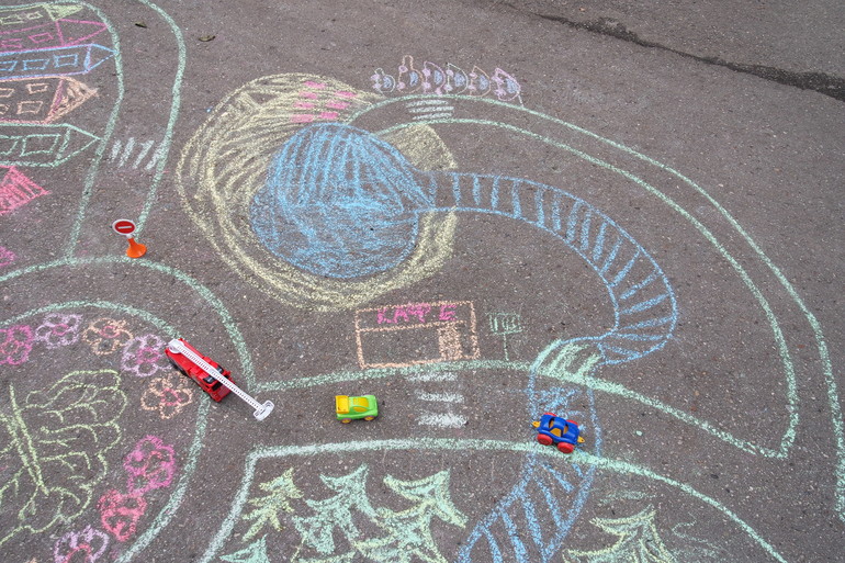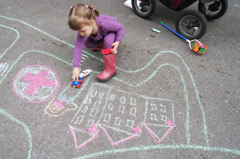 Расставили дорожные знаки, нарисовали зебру и стали играть. ...тоже несколько дней)