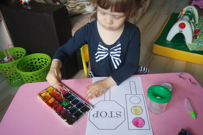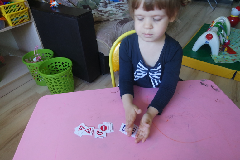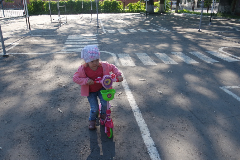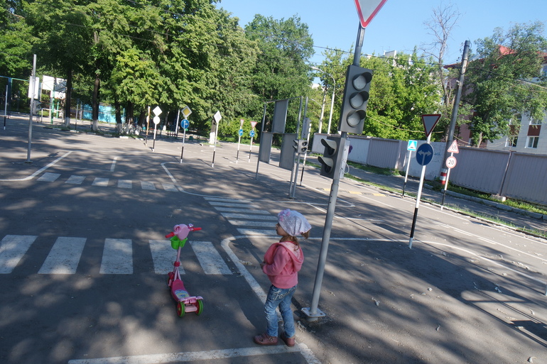Когда Лиза научилась сидеть в коляске, переходя дорогу, я всегда комментировала" Посмотри - это светофор. У него горит красный глазик, значит нужно подождать, сейчас разрешено ехать машинам. Смотри загорелся зеленый глазик, значит нам можно переходить дорогую Нужно посмотреть налево, потом на право, убедиться, что машины остановились". В результате в 2,6г она отлично знала как переходить дорогу, заставляла всех ходить только по тротуару. (А у нас во дворе обочина, а не тротуар... она заставляла меня (беременную) везти коляску с Анютой только по бездорожью, тк дорога для машин). И на своем птичьем языке обьясняла младшей сестре , что нельзя бегать к дороге!!!!